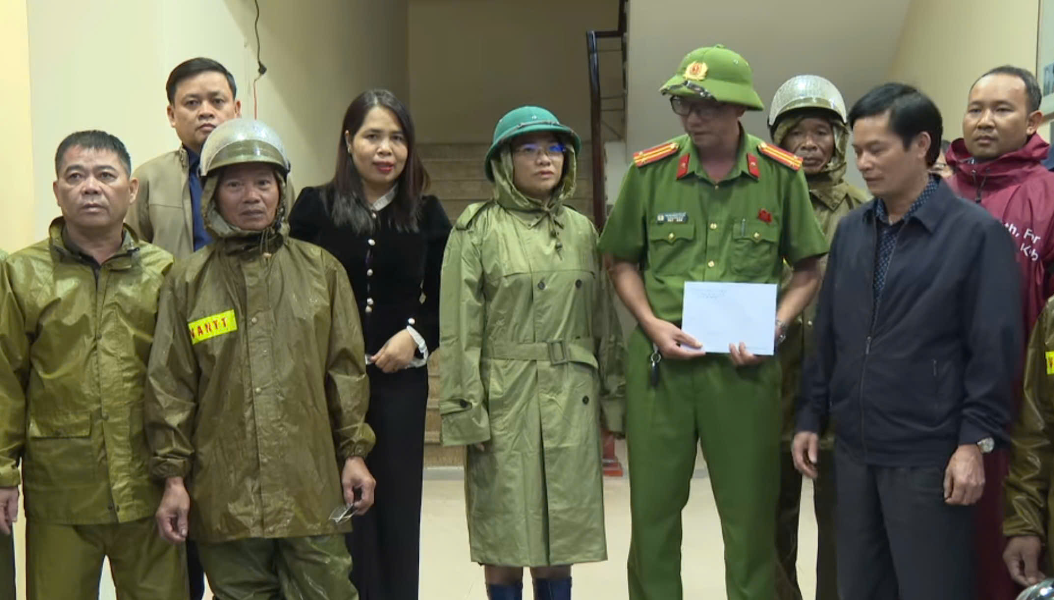 Lãnh đạo UBND xã thăm, động viên các cán bộ, chiến sỹ, lực lượng dân quân tự vệ làm nhiệm vụ phòng, chống và khắc phục hậu quả do mưa lũ