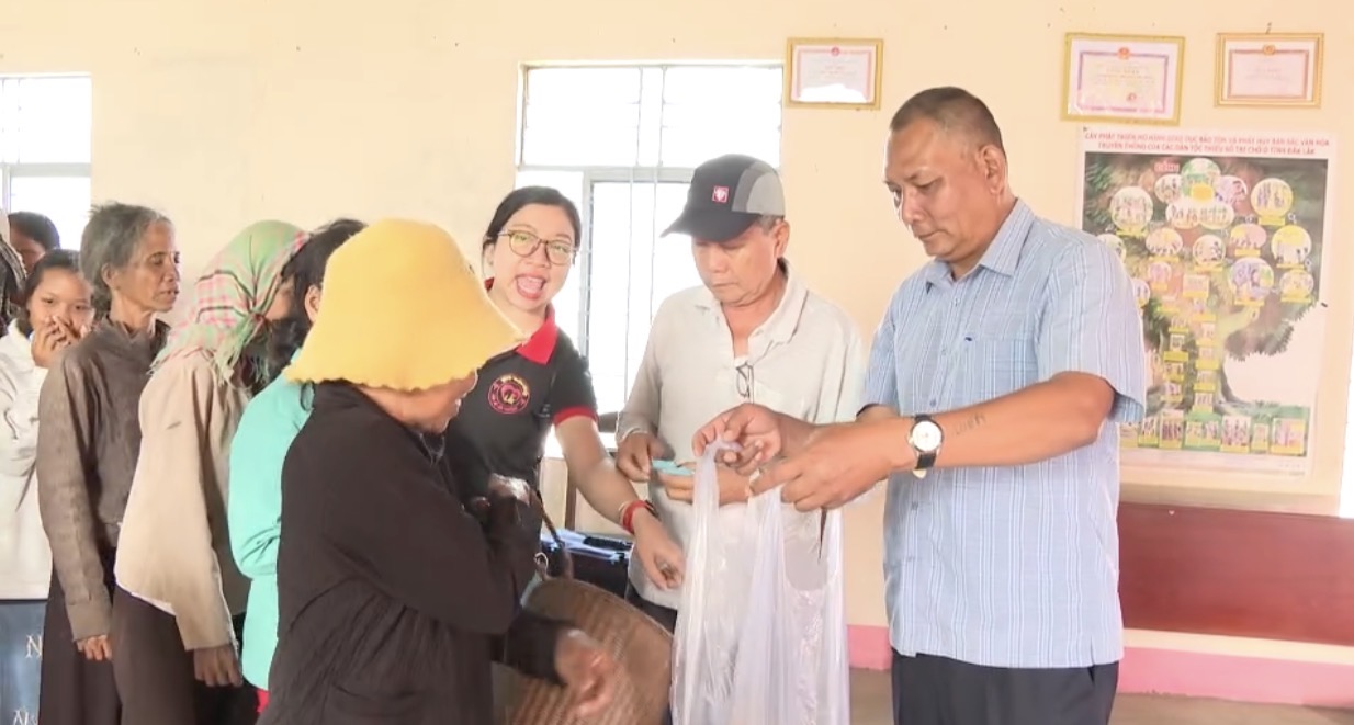 Tặng quà cho các hộ dân khó khăn ở buôn Dơng Yang và buôn Năm Pă, xã Liên Sơn Lắk