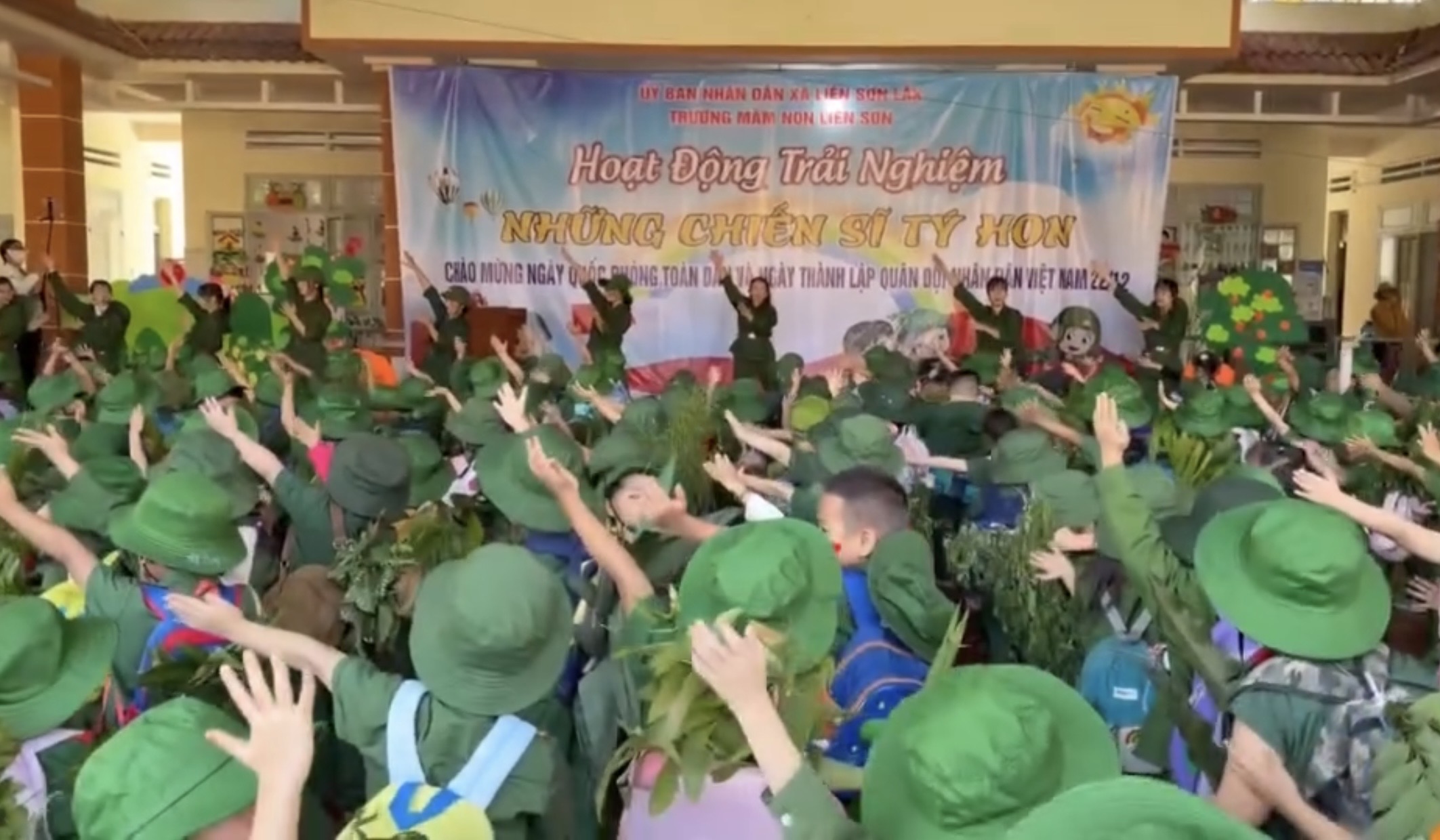 Không khí sân Trường Mầm non Liên Sơn những ngày cuối năm trở nên rộn ràng, sôi động hơn bao giờ hết khi nhà trường sôi nổi tổ chức chương trình hoạt động trải nghiệm với chủ đề “Những chiến sĩ tí hon”. Chương trình thu hút sự tham gia của 502 trẻ đến từ các khối lớp mầm, chồi, lá; là hoạt động ý nghĩa nhằm giáo dục truyền thống yêu nước, bồi đắp niềm tự hào dân tộc cho trẻ mầm non.