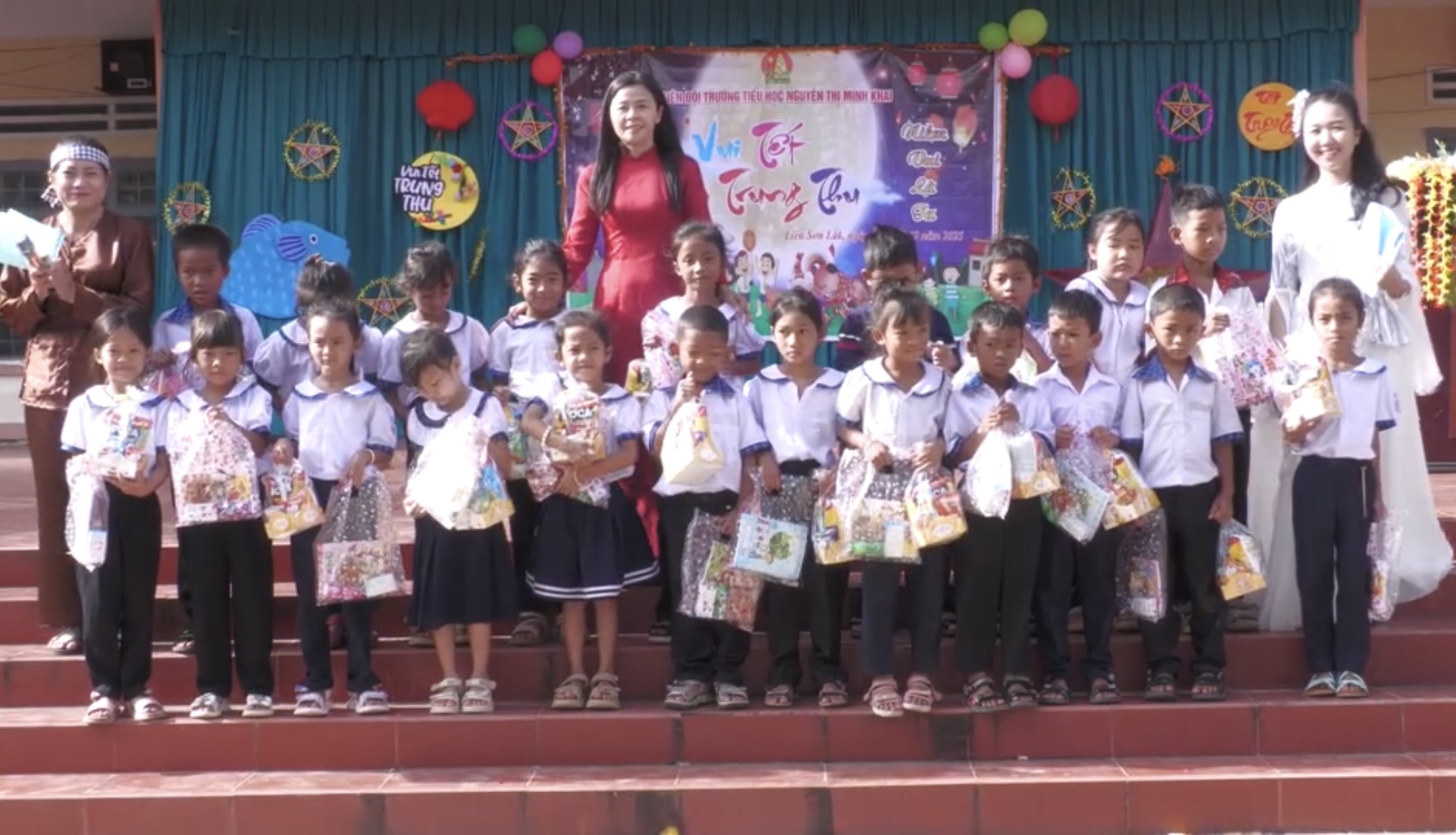 Tại chương trình, Ban Tổ chức đã trao 60 suất quà là bánh kẹo, sữa và 120 suất quà là quần áo mới cho các em học sinh có hoàn cảnh khó khăn, góp phần động viên, khích lệ tinh thần học tập của các em. Không chỉ có những phần quà ý nghĩa, chương trình còn mang đến cho các em nhiều tiết mục văn nghệ đặc sắc, màn múa lân sôi động. Đặc biệt, nhiều em học sinh được quý thầy cô giáo hóa thân thành chú Cuội, chị Hằng, mang đến những màn biểu diễn duyên dáng, dễ thương, khiến không khí ngày hội thêm náo nhiệt và tràn ngập tiếng cười.