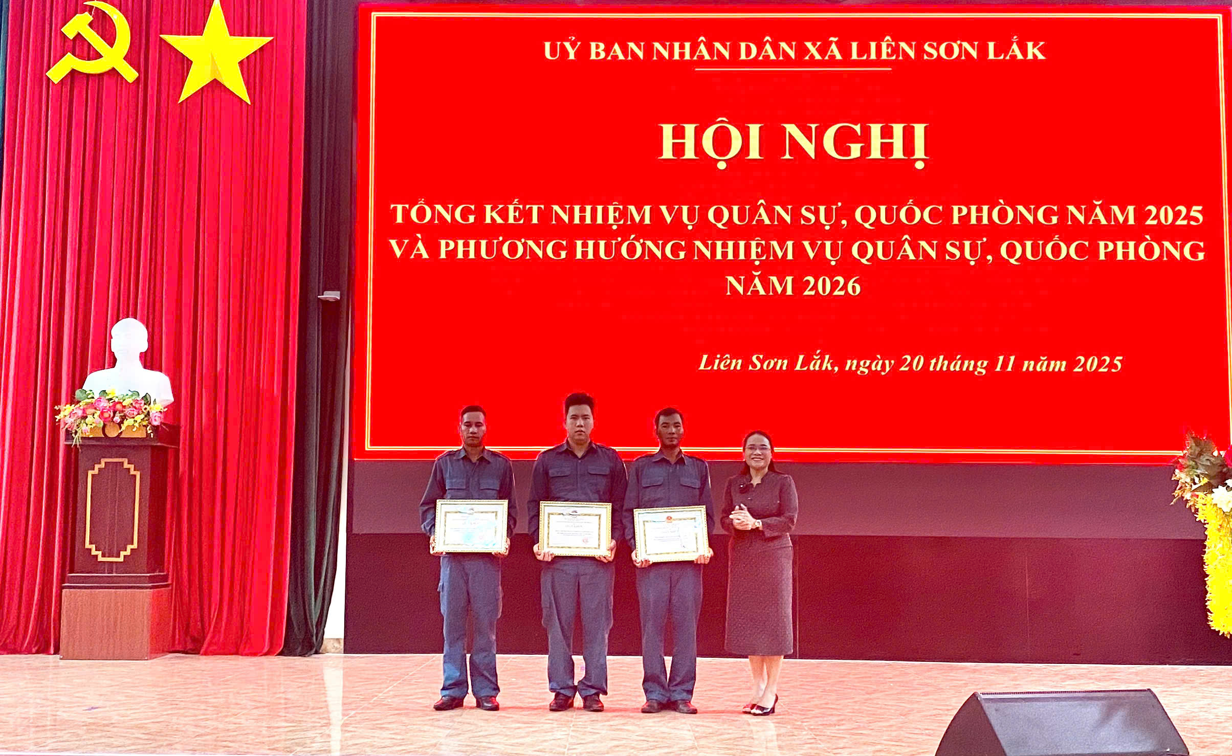 Nhân dịp này, UBND xã Liên Sơn Lắk cũng đã khen thưởng 03 tập thể và 10 cá nhân có thành tích xuất sắc trong công tác Quân sự, Quốc phòng trên địa bàn xã Liên Sơn Lắk năm 2025.